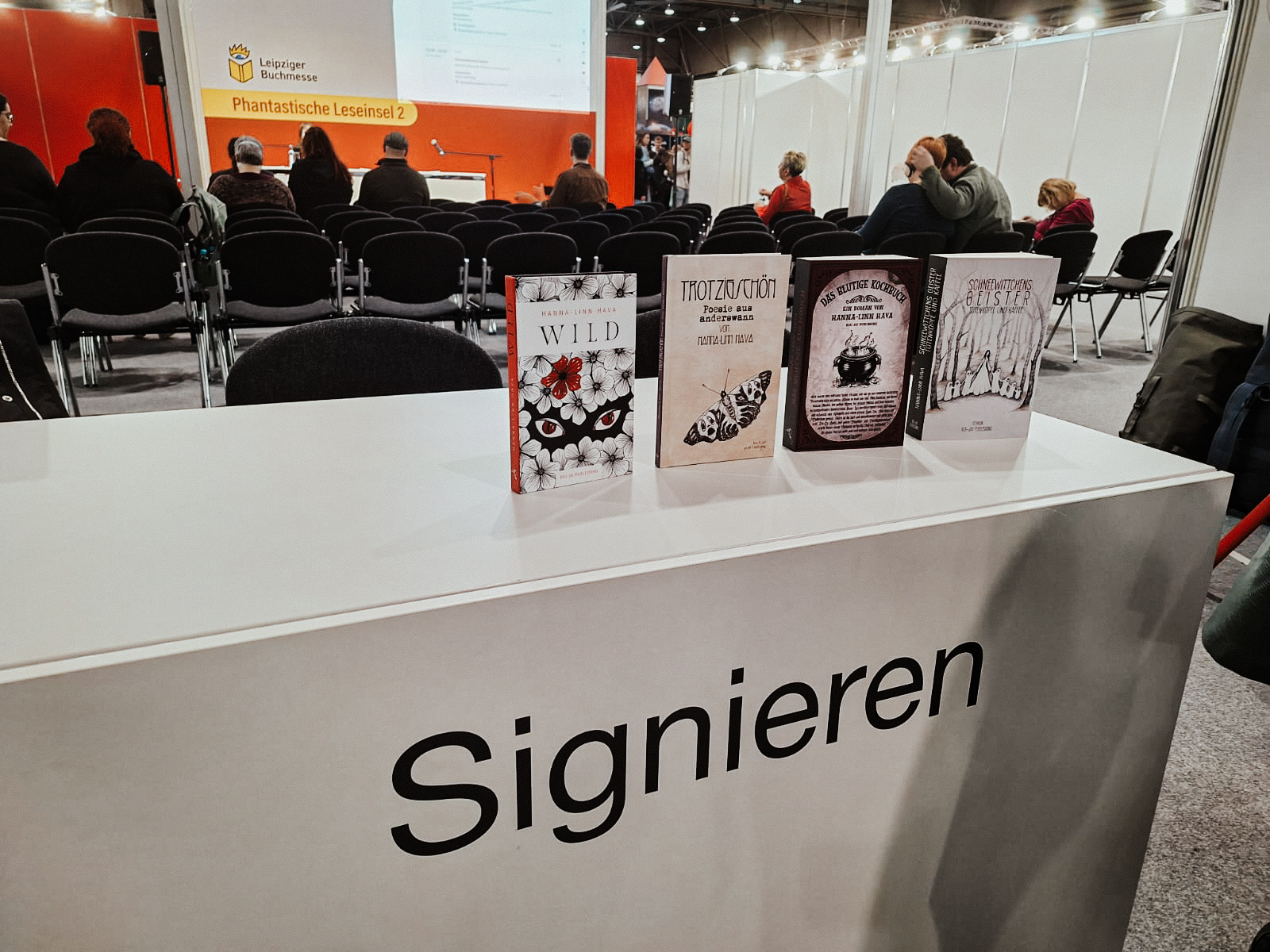 Ich durfte in Halle 3 in der phantastischen Leseinsel am Sonntag aus meinem frisch erschienen Roman „Schneewittchens Geister“ lesen, stapelweise Bücher signieren, bibliophile Gespräche am Verlagsstand von kul-ja! publishing führen und mich daran freuen, dass Literatur immer noch so gefeiert wird.